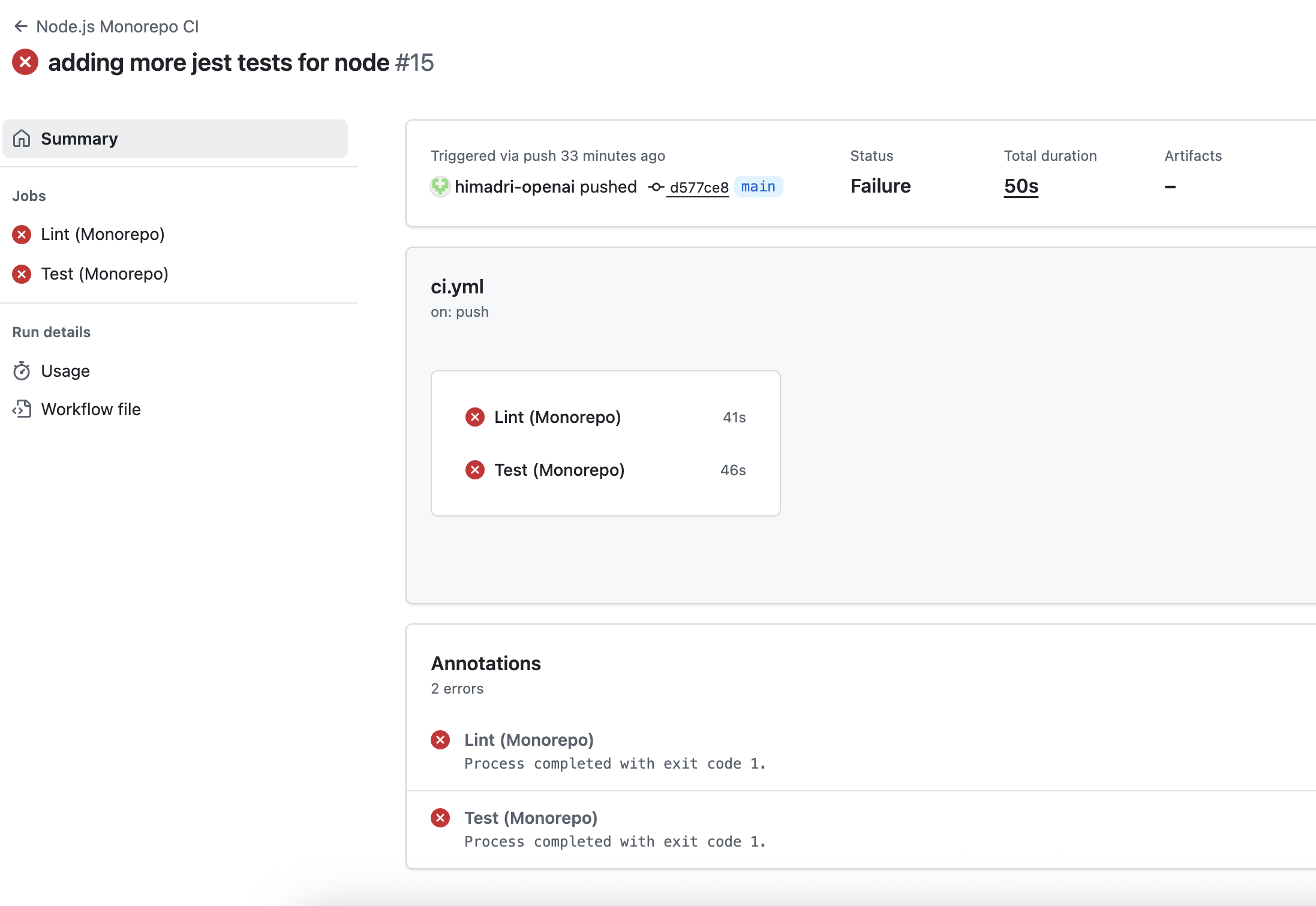 You can navigate to the Actions tab under Repo to view the failing jobs in your Actions workflow.